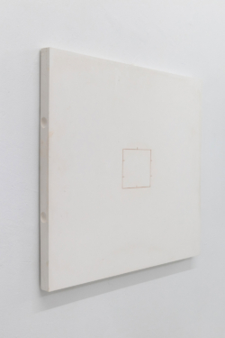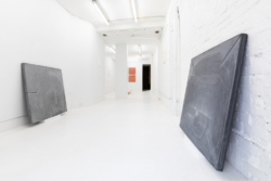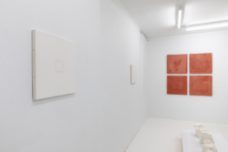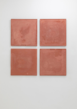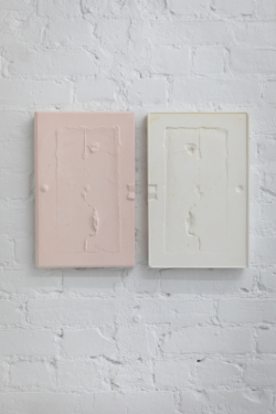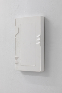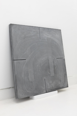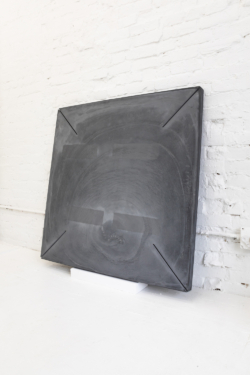 The shelf, the pedestal, the table become a prop for our relation to situate ceramics, this topographical space that this medium occupies reinforces the perception of its fragility. Hae Won Sohn’s flat surface works are hung, propped against the wall, or placed on the floor. The mere physicality demonstrates the consciousness of her process and her ability to influence crafts-based aesthetics. Her most recent pieces are made from pigmented hydrocal the 40inch squared dimensions ascertain a certain physicality that relates to body and labor, and also reinforces Sohn’s approach to extracted form as a singular, autonomous experience.