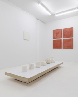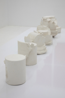 Embracing the mistake within a craft influenced medium, Sohn was able to manifest it through ideas of labor and practice. An earlier work “Fraternal Centuples,” a commentary on the cast vessel where Sohn created 101 separate plaster molds reaching 101 unique multiples by breaking each mold, extending the critique of craft beyond simple ideas of form and commentary on utilitarianism. Hae Won Sohn works within a medium serially, where a certain amount of decision-making is being deferred through a process-based medium and its aesthetics.