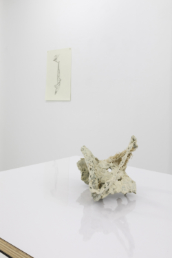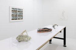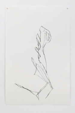 Lindman and Schoerner have produced a publication, Photographs of Sculptures (Hassla Books, 2019), featuring these images. Laid out in sequence, these photographs point towards the mutability of two and three dimensionality implicit in Lindman’s sculptural engagement, which here is further heightened by Lindman’s large charcoal line drawings, made from observation of his own sculptures, that will hang directly on the gallery’s wall.