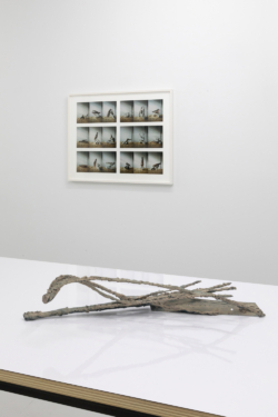 From an essay commissioned for this project, Alex Bacon writes: “Lindman’s work has, almost since the beginning, involved found objects. He has a keen eye for materials that might engender a good painterly— and now sculptural—composition. Sometimes these materials have been included in paintings as compositional elements, while other times they are present only by implication, as a matrix through which an imprint is left, or a logic out of which a series of marks or gestures are laid down and developed… Lindman’s sculpture is in many ways an extension of this practice, which has always driven how he has made his paintings. Most fundamentally it is a response to his desire to introduce multiple viewpoints into his work, an impulse that arose from a response to certain of the materials he came across, which he thought might be limited by the singular, two-dimensional plane of painting. Yet, the resulting sculptures very much betray a painterly eye. They present not so much a single, holistic object for our appreciation, but rather a series of sequential viewpoints, each distinct but similar to the others, encouraging our movement around the work so as to compare one to the next. This is provoked by the intimate, bodily scale of the works, which reveal the handling involved in their making, and invite their display in a domestic context, such as on a table top…
